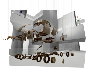 A 60 foot high volume is clad in dull white zinc. The interior volume is the exhibition “Kunsthalle” designed as a “white volumetric,” which is neutral until activated by art media. Inserted into this volume are educational spaces for studios and classrooms.